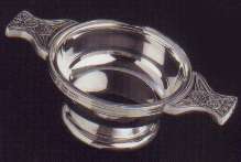 A "Quaich" (pronounced kway-ch with a soft end sound as in Loch), is an old Scottish drinking cup. Dating back hundreds of years, the quaich was carried by most men, to allow them to scoop water from rivers, streams or "burns" (the Scottish name for a stream) A Journey of any distance in those days could be difficult and harsh, so the Scot would not be able to carry too many things. Hence, the drinking cup was reduced to this size and made easily available from his belt. Typically made from wood, the quaich would hang from the persons belt and be attached by a leather strap to one of the short handles at the side. More ornate quaichs were made from Horn or Bone. Today, the quaich is sold as an ornamental piece in a range of sizes and finishes and is often presented in Scotland to mark an achievement or as a token of friendship & respect. A selection of Quaichs can be seen in The Lairds Castle.