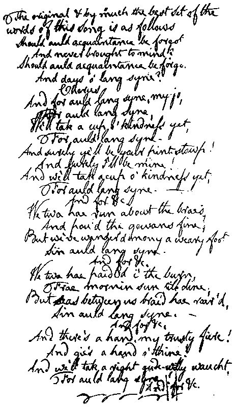 Facsimile of Burns HandwritingAuld Lang Syne |